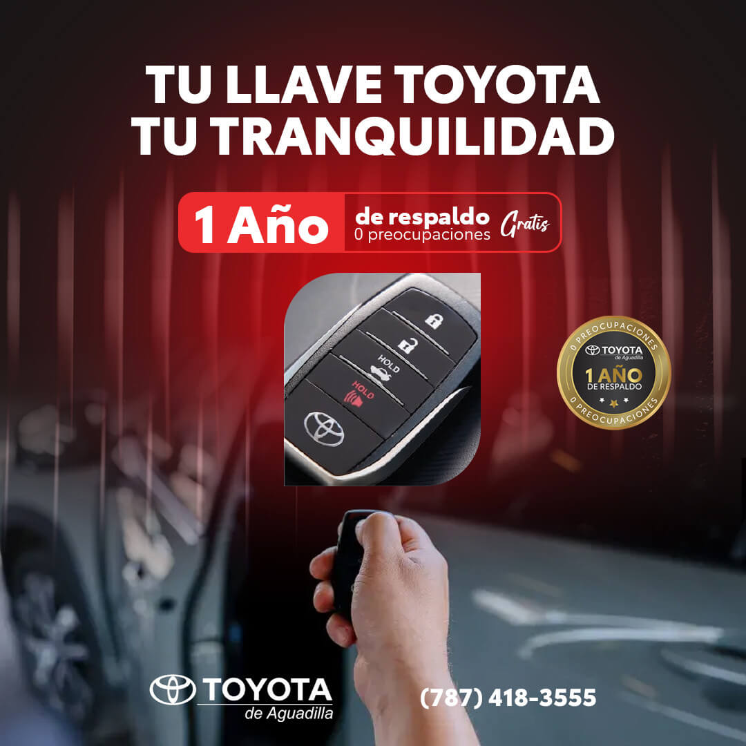 El concesionario Toyota de Aguadilla se reserva el derecho de modificar, cancelar o sustituir estas promociones en cualquier momento, sin previo aviso, en cumplimiento con la normativa aplicable. Todas las ofertas están sujetas a aprobación de crédito y financiamiento exclusivamente a través de Toyota Financial Services of Puerto Rico y a disponibilidad de unidades en inventario. Aplicables únicamente a clientes que cualifiquen para financiamiento aprobado. Ejemplo basado en términos estándar de financiamiento; las condiciones reales (tasa de interés, pronto pago, balance financiado, seguros, etc.) pueden variar según cada cliente. La aceptación de cualquiera de las ofertas aquí descritas implica la conformidad del cliente con los términos y condiciones establecidos en este documento, así como con las disposiciones legales y reglamentarias vigentes en Puerto Ric